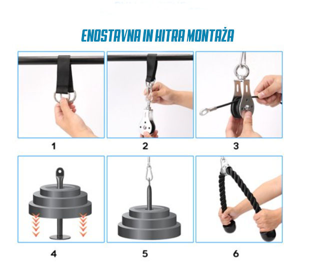 Budući da obično imamo ograničen prostor za fitness sprave, vrlo je važno da svoju kućnu teretanu uredite na odgovarajući način. Sa sustavom remenica ili uređajem Lat Pulley možete uštedjeti na prostoru u svojoj kućnoj teretani. Sve što vam treba je šipka ili palica na koju ćete pričvrstiti uređaj ili kuku.